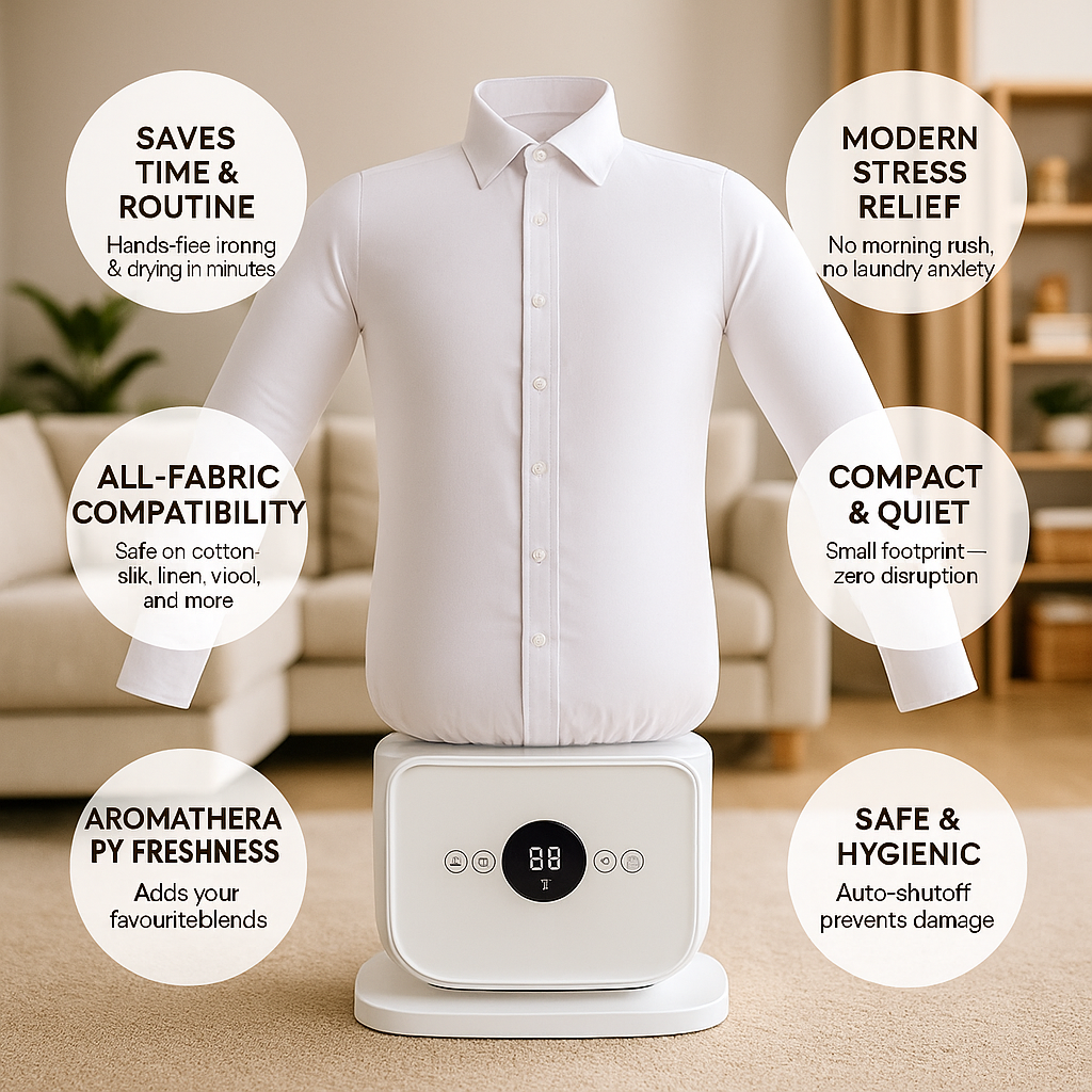 The Dryon™ Automatic Ironing System is designed for the real world — the 7AM rush, the missed alarm, the shirt you needed five minutes ago.