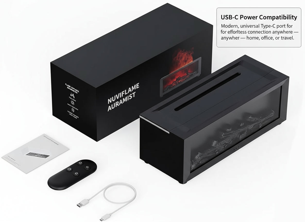NuviFlame™ AuraMist fills the air with warmth, glow, and calm — not just light, but life.